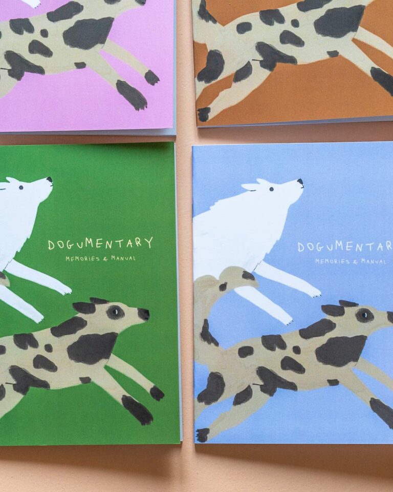 DOGUMENTARY with an illustration of running dogs | 150 × 190 mm
